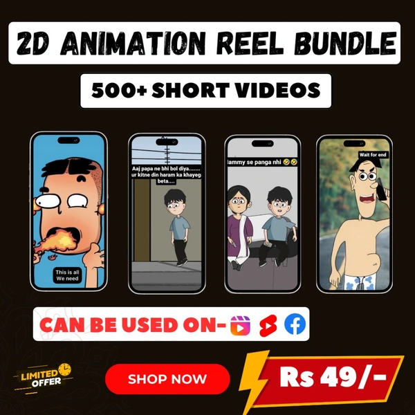 Get 500+ 2D Animation Readymade Hindi Reel Videos